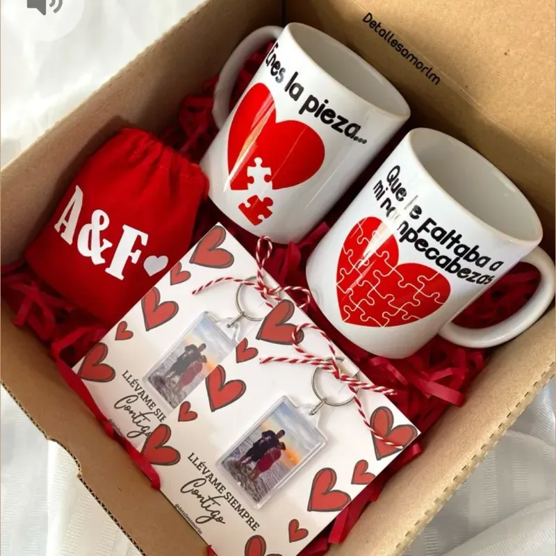Incluye Pareja de tasas personalizadas Pareja de llaveros 3 bombones Decoración del color de su preferencia pueden incluir fotos y frases personalizadas