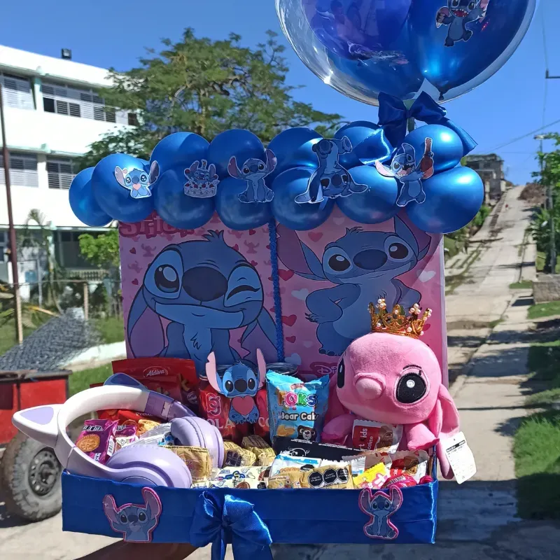 Bandeja extra grande personalizado con el animado de su preferencia Globo burbuja Confituras variadas Peluche a su elección según disponibilidad.