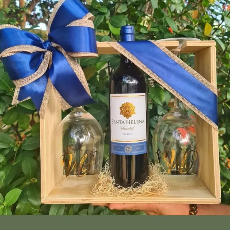 Incluye botella de vino o sidra Dos copas Decoración del color de su preferencia