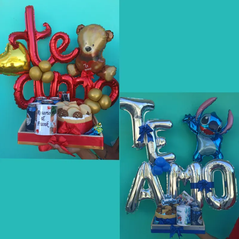 Bandeja grande con globos de Te amo de 16 pulgadas con decoración a su gusto y agregados a su elección 😊