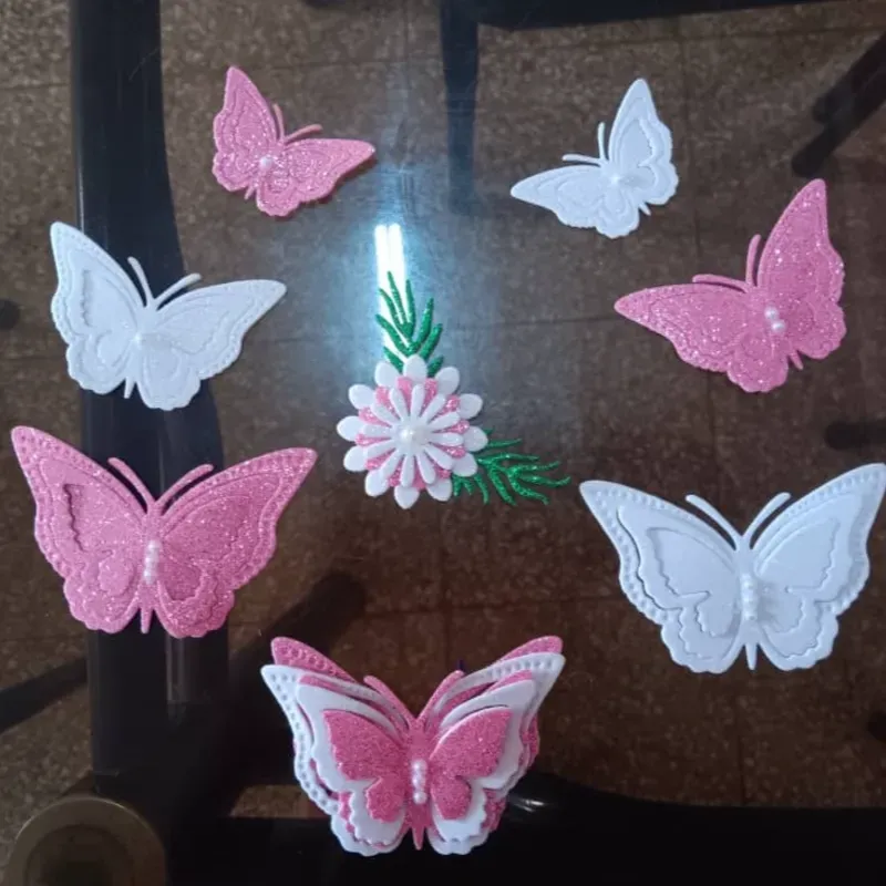 Set 7 piezas mariposas 3D, incluye florecilla pequeña
