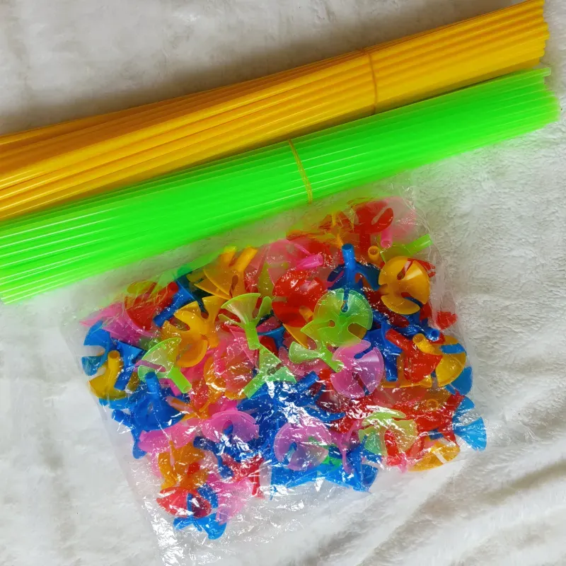 Barillas plásticas con bases que se usan como soportes para globos