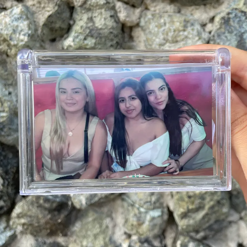 Portarretrato de acrílico que lleva dos fotografías.