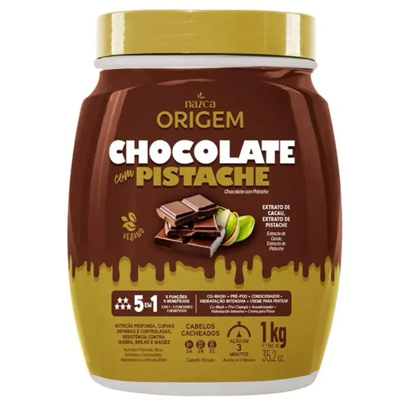 La cremosa mezcla de chocolate y pistacho nutre profundamente, define y deja el cabello increíblemente suave, ofreciendo 5 formas de cuidar tu cabello en un solo producto: co-wash, pre-poo, acondicionador, hidratación intensiva y crema para peinar.
