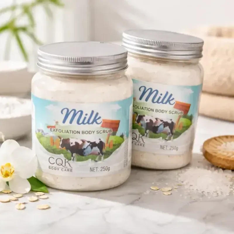 Milk Exfoliation Body Scrub – exfoliante corporal con leche (milk scrub) en pote de 250 g.