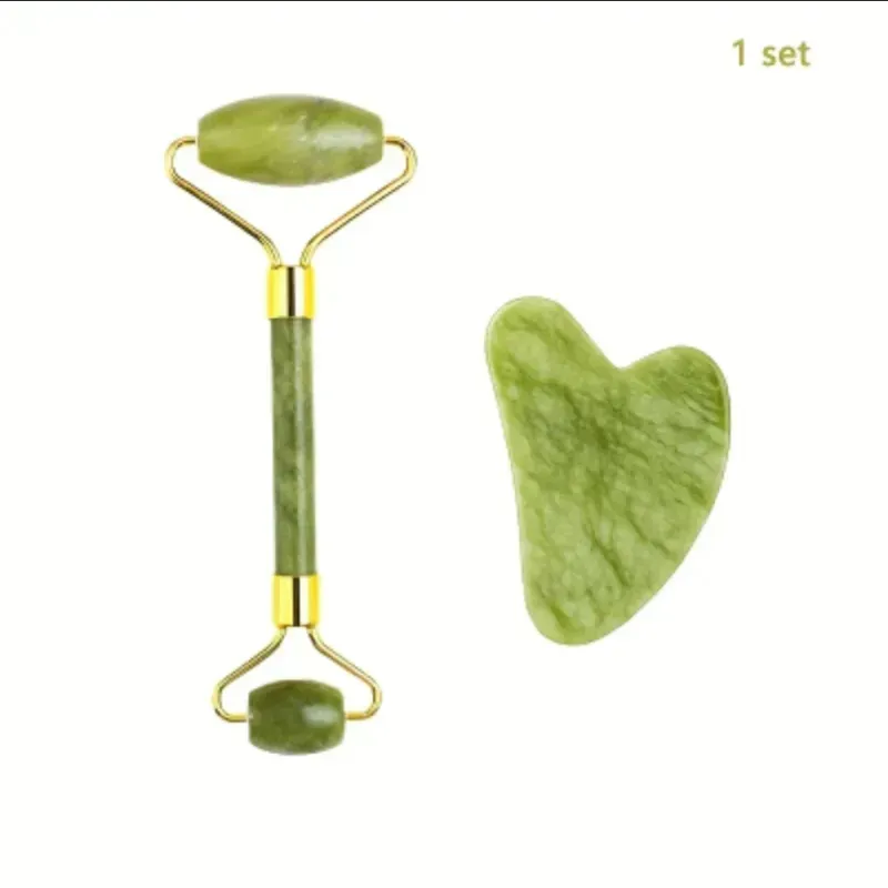 Juego de rodillo de jade y Gua Sha – Rodillo facial de piedra de jade natural para masaje facial, relajación y circulación sanguínea – Herramienta de cuidado de la piel para antienvejecimiento