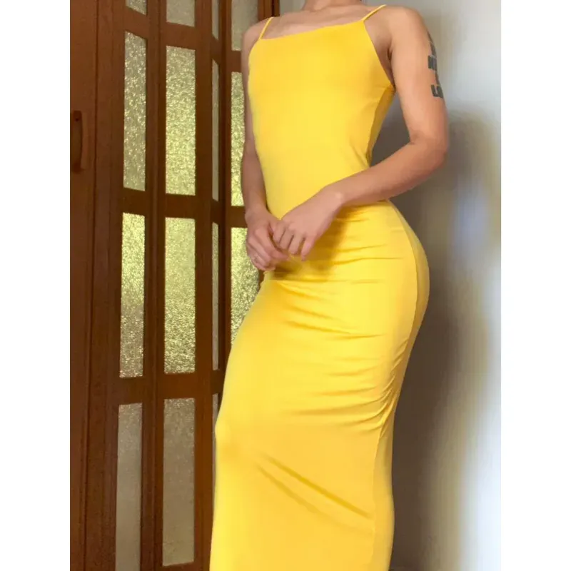 Vestido Largo De Tirantes Color Amarillo