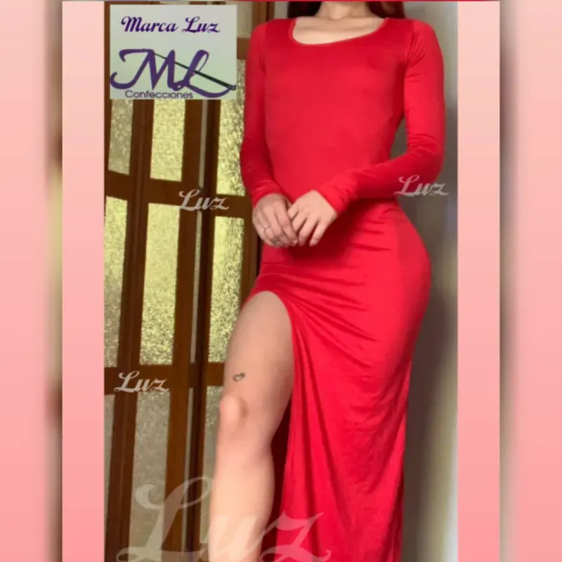 Vestido Largo Mangas Largas Con Abertura En Una Pierna Color Rojo