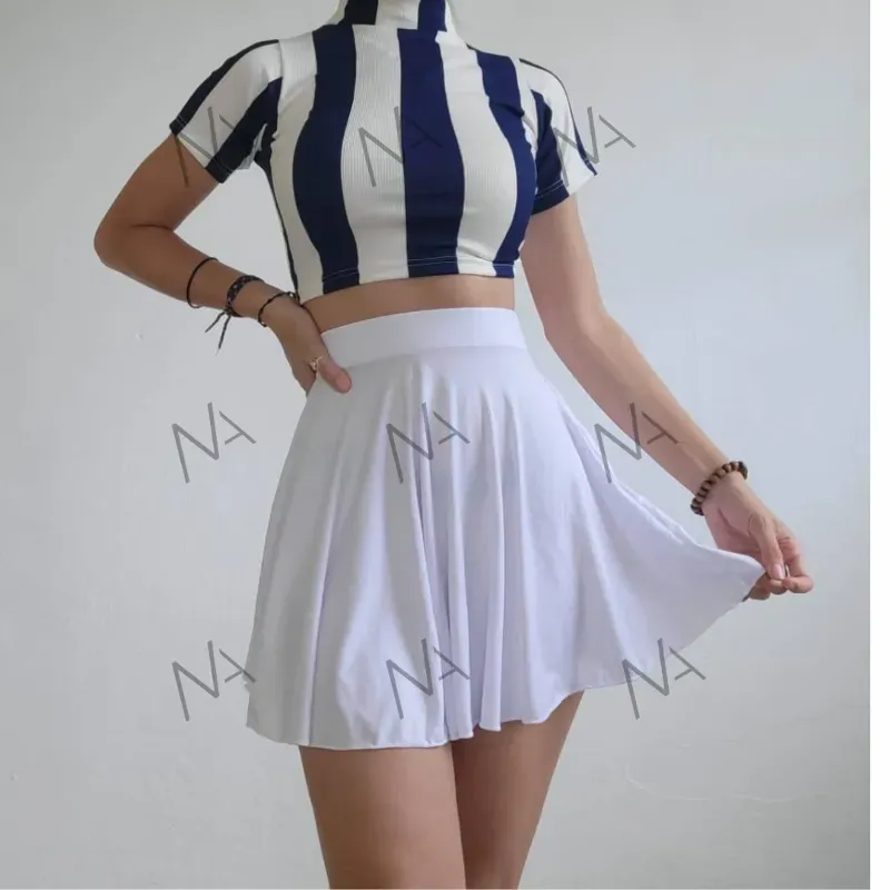 FALDA CIRCULAR BLANCA/PULOVITO DE RAYAS