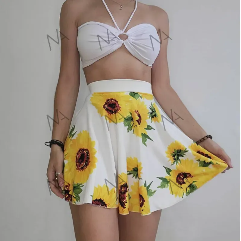 FALDA CIRCULAR DE GIRASOLES/TOP INFINITO BLANCO