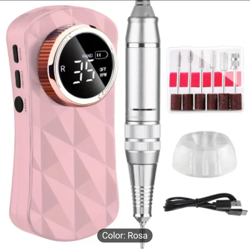 Torno Eléctrico para Uñas, 35000 RPM, Torno Recargable para Uñas Acrílicas, Pulidora de Gel, Portátil Inalámbrica con Kit de Brocas para Manicura en Salón o Casa, Regalo para Mujer, Herramienta de Manicura, Manicura en Casa, Diseño Compacto