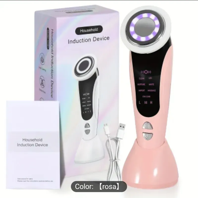 Masajeador Facial y de Cuello 4 en 1 con LED Relajante y Vibración - Alimentado por USB, Color Beige Claro, Dispositivo de Alta Calidad, para Entusiastas del Cuidado de la Piel, Diseño Portátil, Duradero