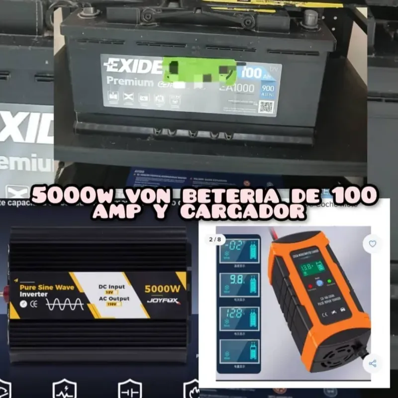 Convertidor de 5000w onda pura + batería de 100ah y cargador inteligente