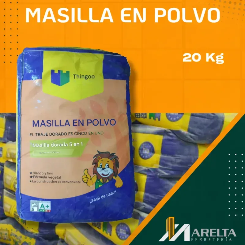 Masilla en polvo ideal para alisar y preparar superficies, logrando acabados lisos y uniformes listos para pintar. Perfecta para corregir imperfecciones, rellenar pequeñas grietas y mejorar el acabado de paredes, con una aplicación fácil y un resultado limpio y profesional.