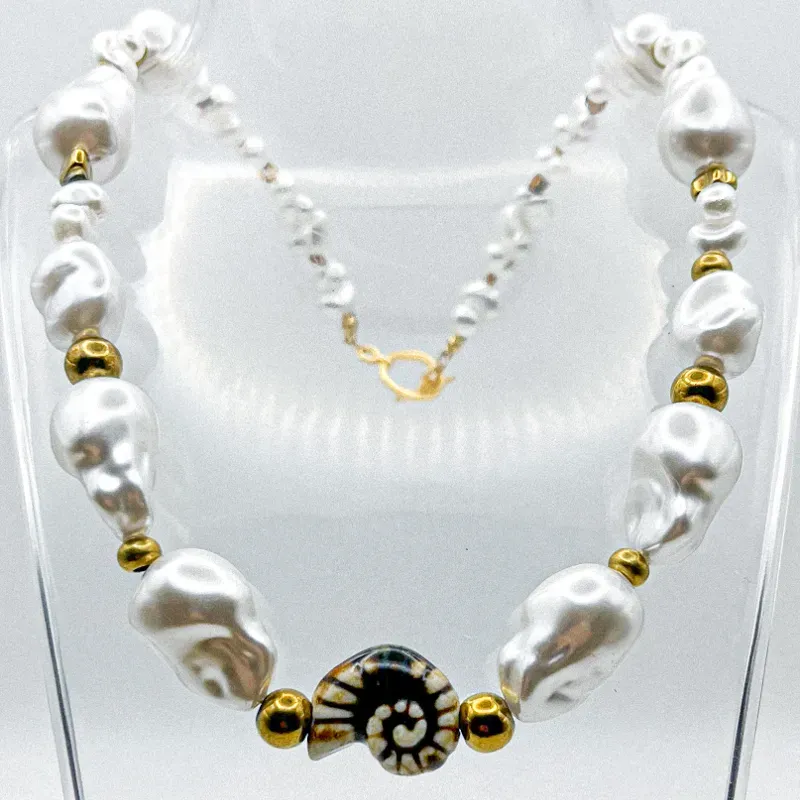 Collar con perlas artificiales y dije de cerámica vidriada