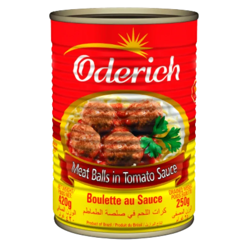 Producto enlatado 420g. Enlatado de albóndigas en salsa de tomate.