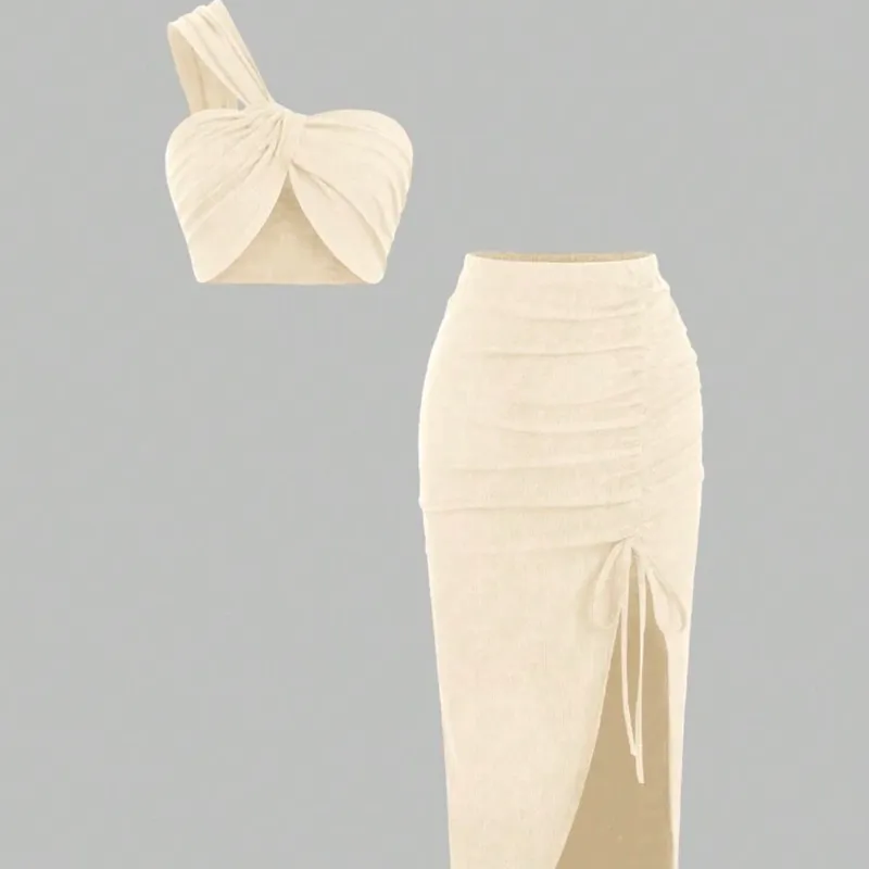 Sweetra Set de 2 piezas: Top corto con lazo asimétrico en el cuello y falda plisada con abertura