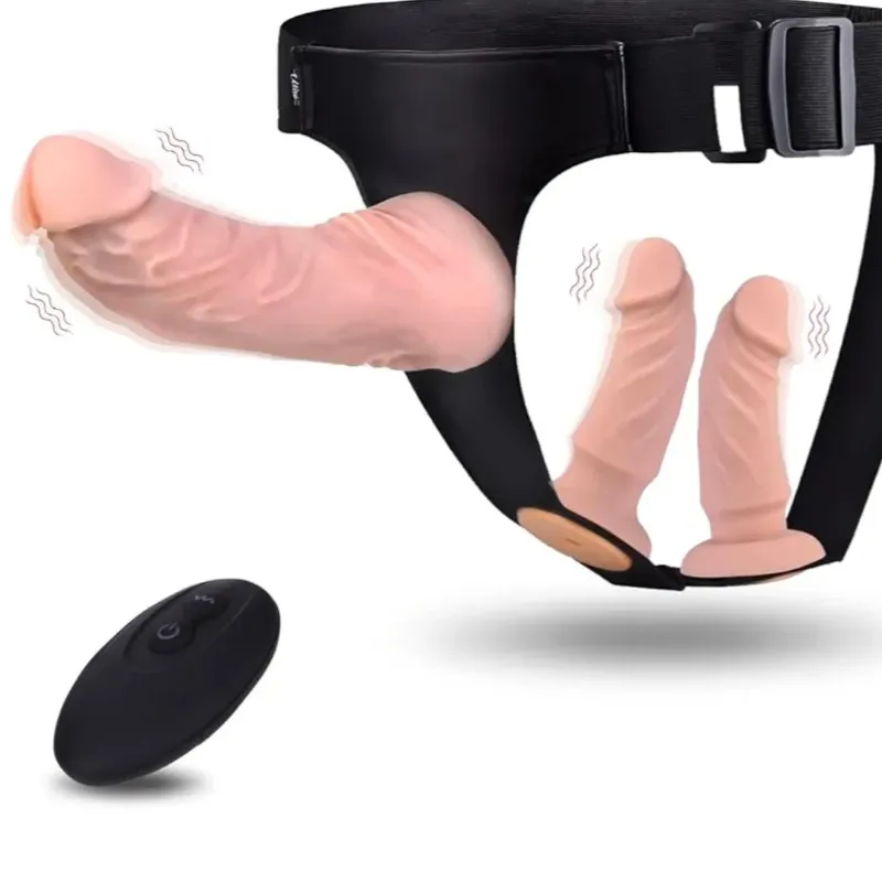 Arnes con triple vibrador, los tres controlados por mando a (corta) distancia