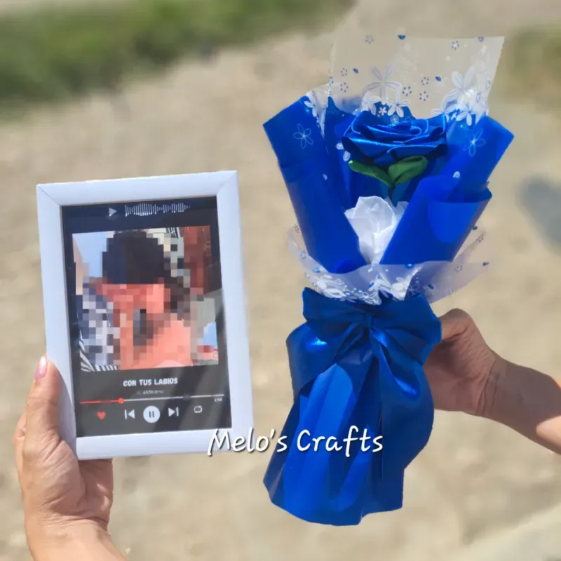 ✨️Cuadro original de 5x7 pulgadas ✨️Ramo de rosa individual del color de su preferencia ✨️Incluye bolsa de regalo