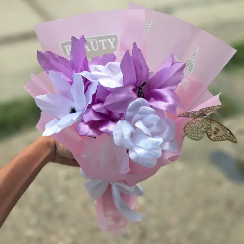 Ramo con 3 rosas de saten y 3 lirios. Colores a su elección.
