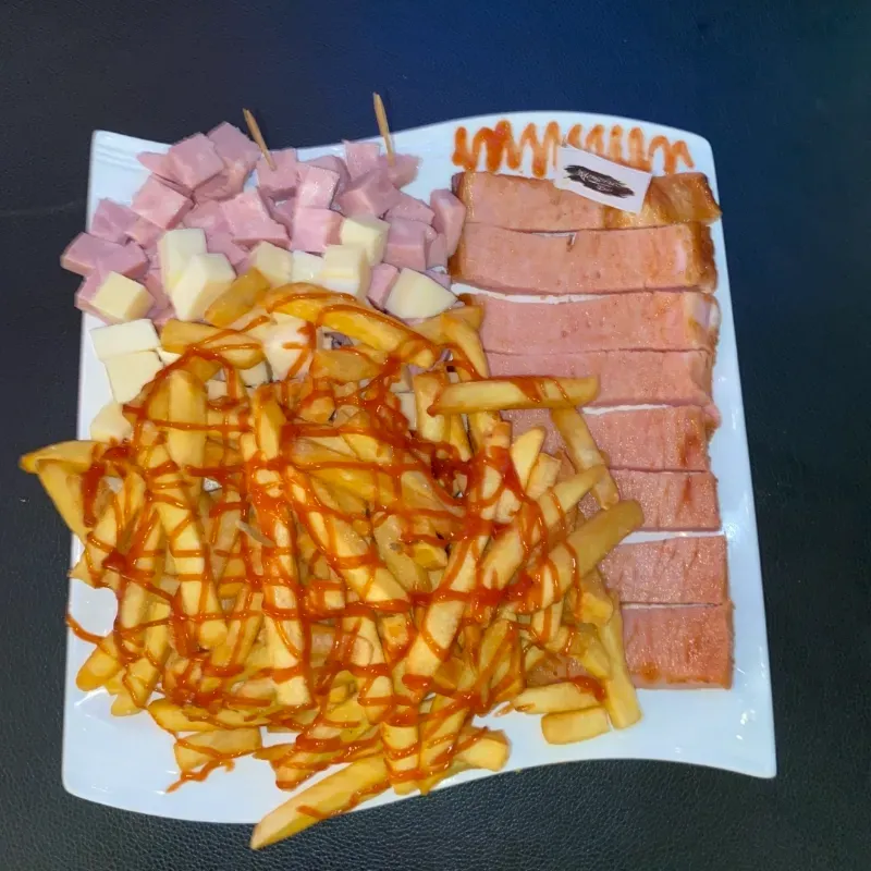 15 OZ Papa Fritas. 15 Oz Lomo Galicio. 15 OZ De Jamon Brabo y Queso Gouda.