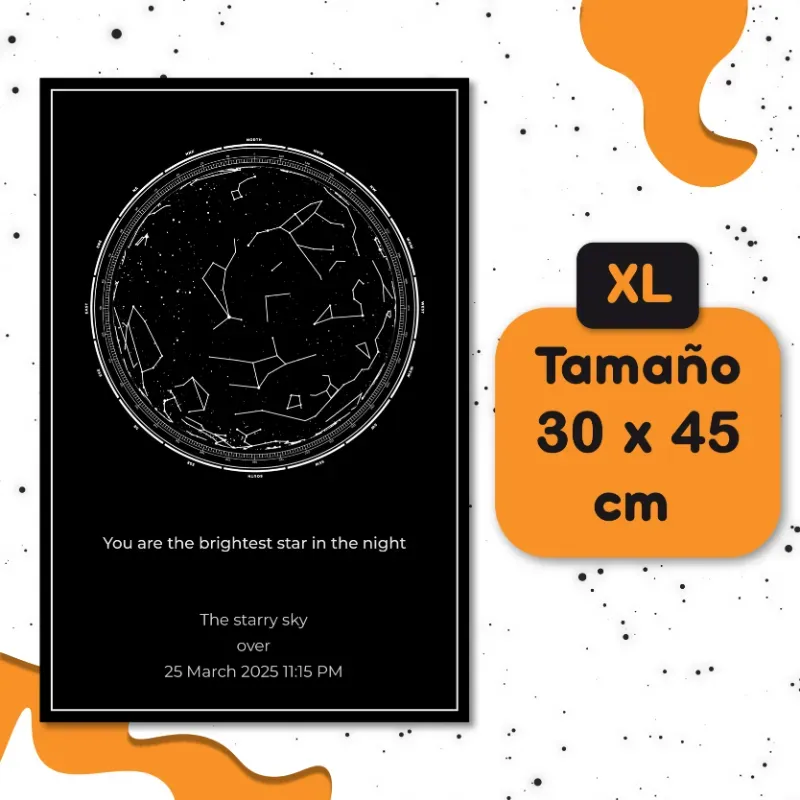 Inmortaliza el mapa estelar de una fecha específica y escríbele una dedicatoria a tu persona favorita. Ahora en tamaño 30x45cm
