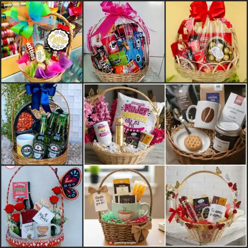Cesta de mimbre decorada con la temática de su preferencia, ideal para cualquier ocasión especial como Cumpleaños, Aniversarios , Baby shower, Graduación, Bautizos, Dia de la Madres , San Valentín, Dia de los padres, Cesta Navideña.