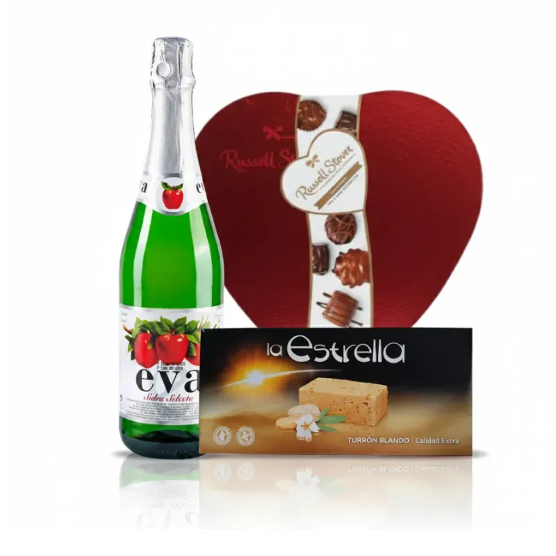 Combo Navideño #2 ¡Repite el éxito o elige tu favorito! Este Combo Navideño #2 ofrece la misma combinación ganadora: la refrescante Sidra Clásica Eva para el brindis, el delicioso Turrón Blando de 200g y la fina Caja de Bombones Russell Stover de 9 unidades (145g). Perfecto para tener un segundo set de reserva, regalar a otra persona o simplemente asegurar más dulzura para tus fiestas.