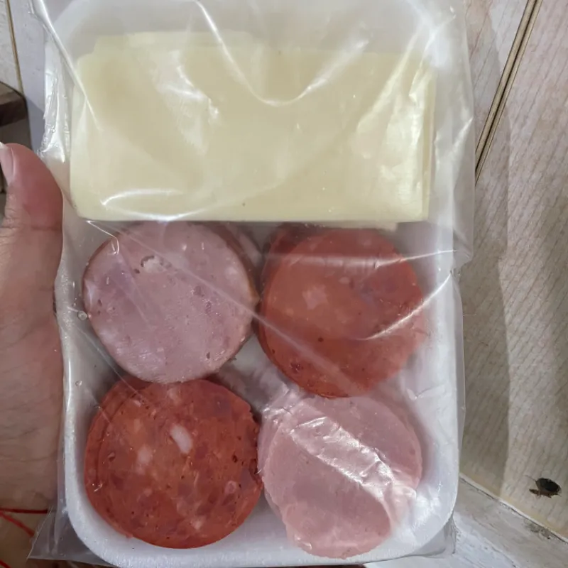 Bandeja de jamón ahumado, jamón vicky, chorizo vela y queso gouda