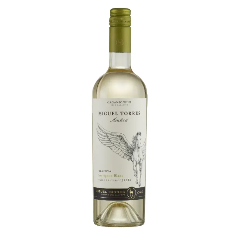 El Miguel Torres Ándica Sauvignon Blanc es un vino blanco chileno elaborado bajo una filosofía de respeto a la biodiversidad y es certificado 100% orgánico y vegano. Producido principalmente en el Valle de Curicó, destaca por su frescura y un perfil aromático marcadamente cítrico y tropical.