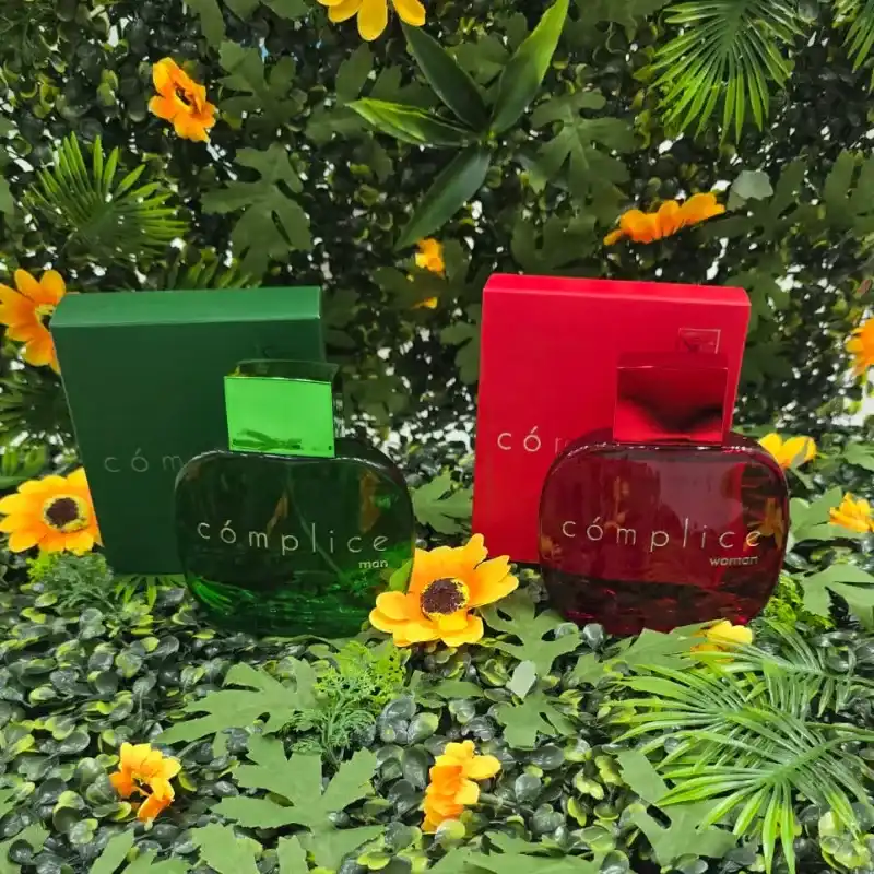 Cómplice for Man (Verde): Es una fragancia para hombres con notas cítricas y frescas, con toques de madera, cuero y pimienta. Se describe como un aroma seductor. Cómplice for Woman (Rojo): Es una fragancia intensamente femenina, con un diseño para resaltar el espíritu sensual.