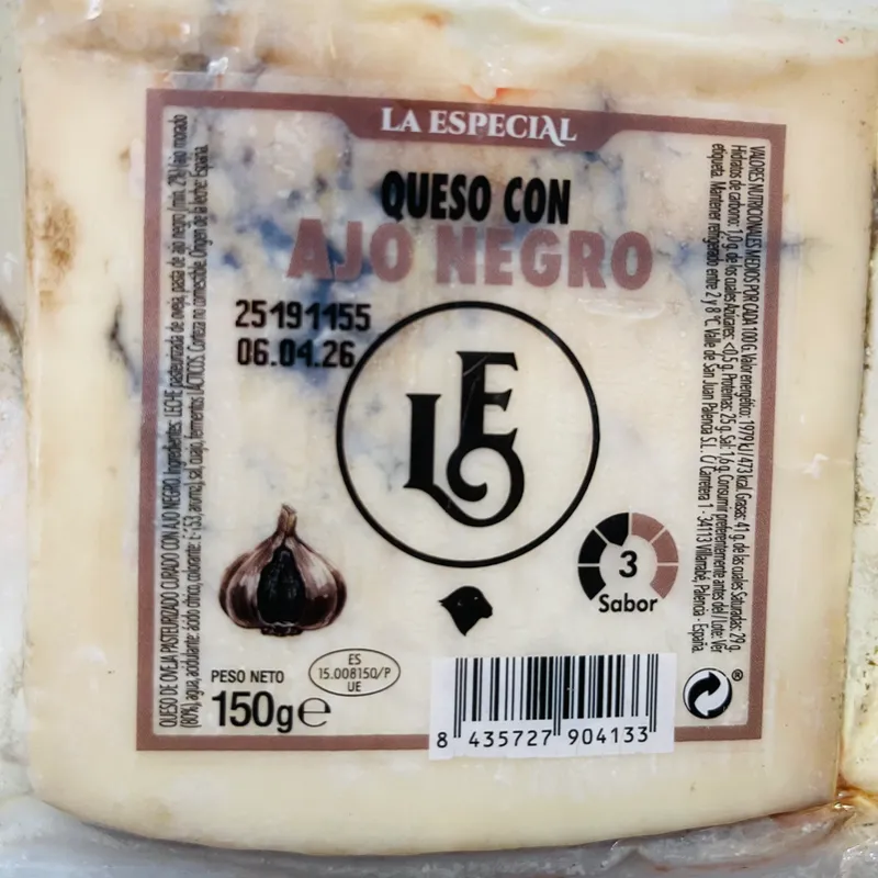 Queso de oveja pasteurizado curado con Ajo negro. 150 g