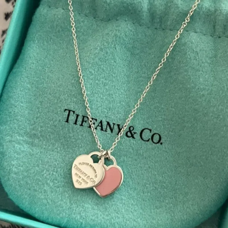 Cadena de doble corazón rosa