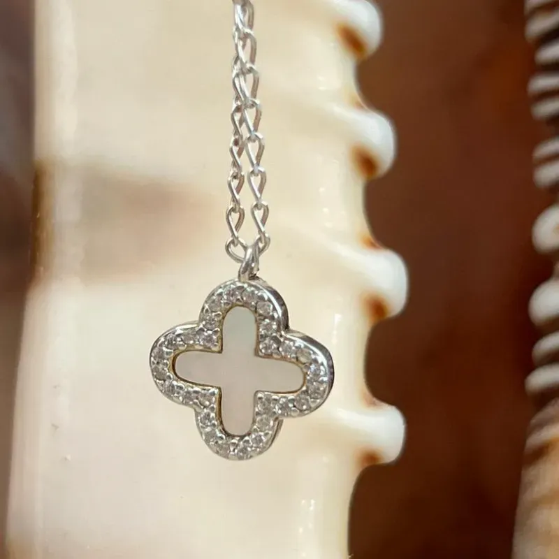 Cadena imitación Van Cleef de trébol blanco con piedritas