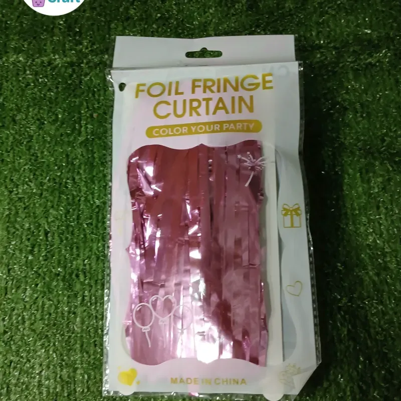 Cortinas de flecos en tono rosado ideal para decoraciones festivas