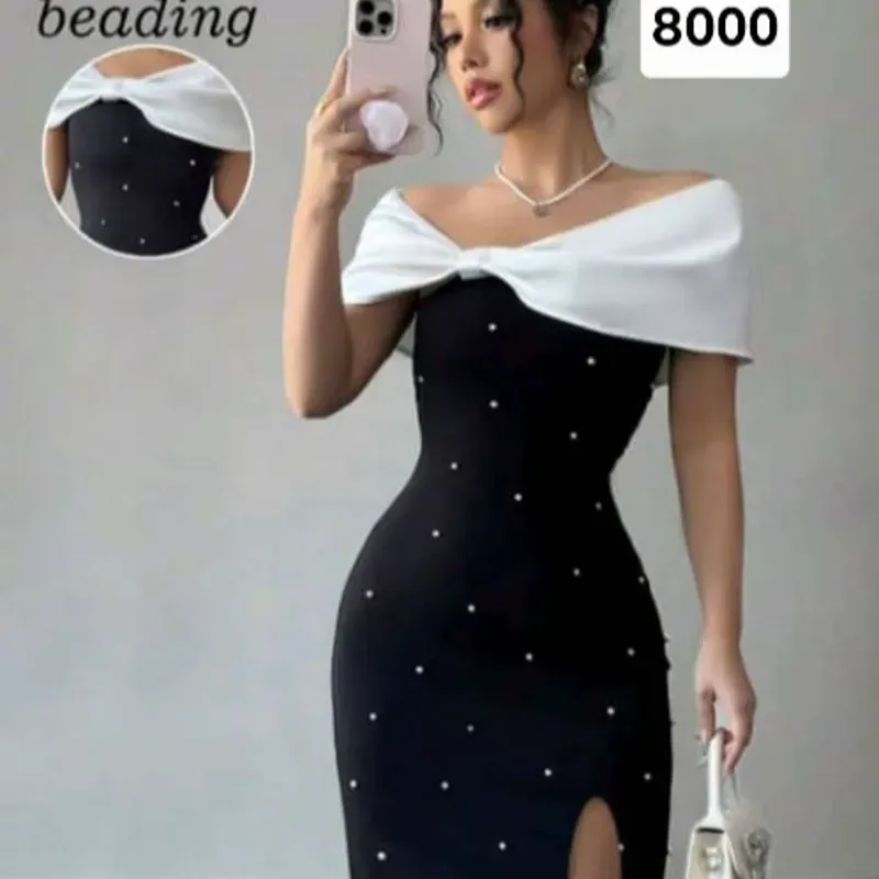 Vestido negro con hombros blancos