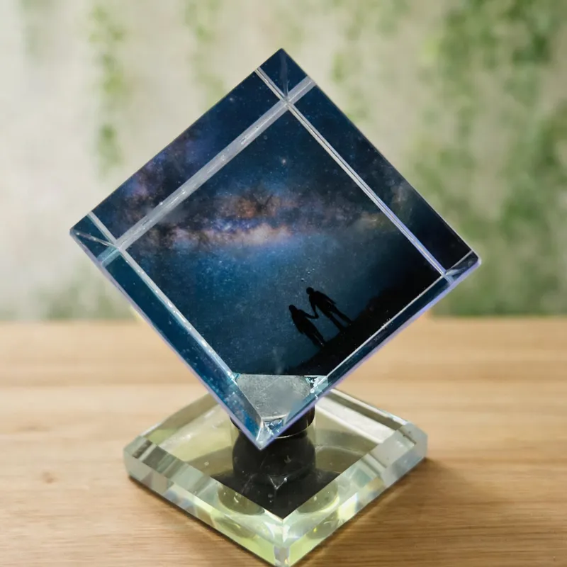 ✨ Nuestro rombo de cristal giratorio ✨ Un detalle único que guarda tres fotos especiales en un solo cristal 💫 Gira suavemente y deja que cada recuerdo brille con luz propia 💙 Perfecto para regalar amor, recuerdos y momentos que merecen quedarse para siempre. ¿Ya sabes qué tres fotos pondrías tú? 💭💎