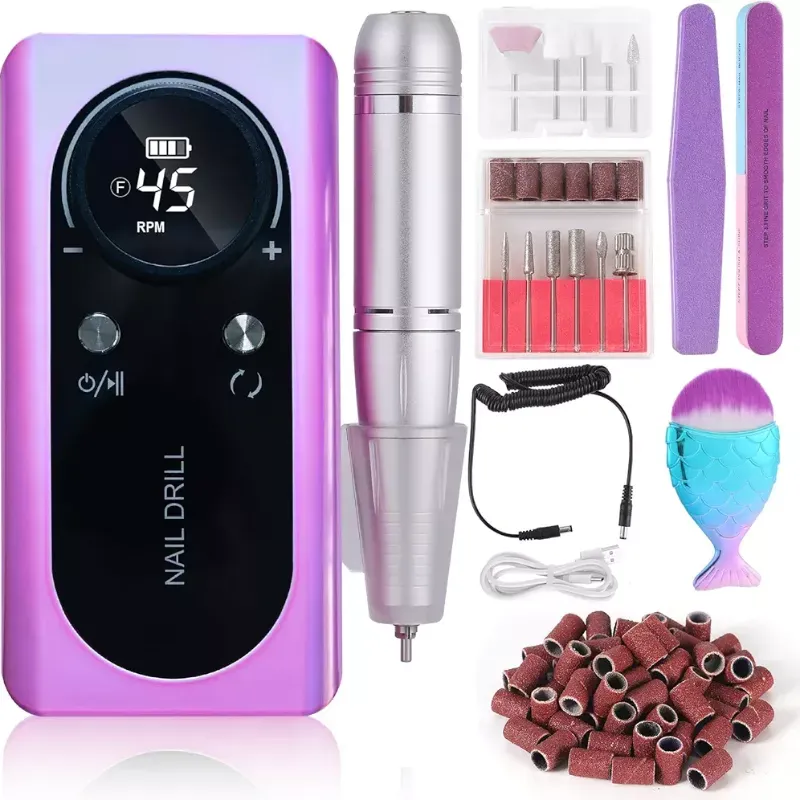 [45000RPM y velocidad ajustable de]: 0-15000RPM es adecuado para pulir uñas, moler cutincl, haping y eliminar la piel muerta. 15000-25000 RPM es adecuado para quitar el esmalte de uñas de gel. 25000-45000RPM es para uñas acrílicas y otras manicuras profesionales en un salón de uñas [Nueva apariencia estética]: la máquina perforadora de uñas está diseñada con una apariencia aerodinámica. Moderno y cómodo de llevar con clip en la parte posterior. Contiene varias brocas en el paquete para diferentes propósitos, adecuadas para diferentes necesidades de uso.[Batería recargable de gran capacidad]: Bulid en batería de iones de litio de 3600 mAh 3.5 horas completamente cargada para trabajar hasta 6-10 horas. Cargado por el puerto USB tipo C, mientras tanto, se puede utilizar como salida USB DC5V del banco de energía para emergencia.
