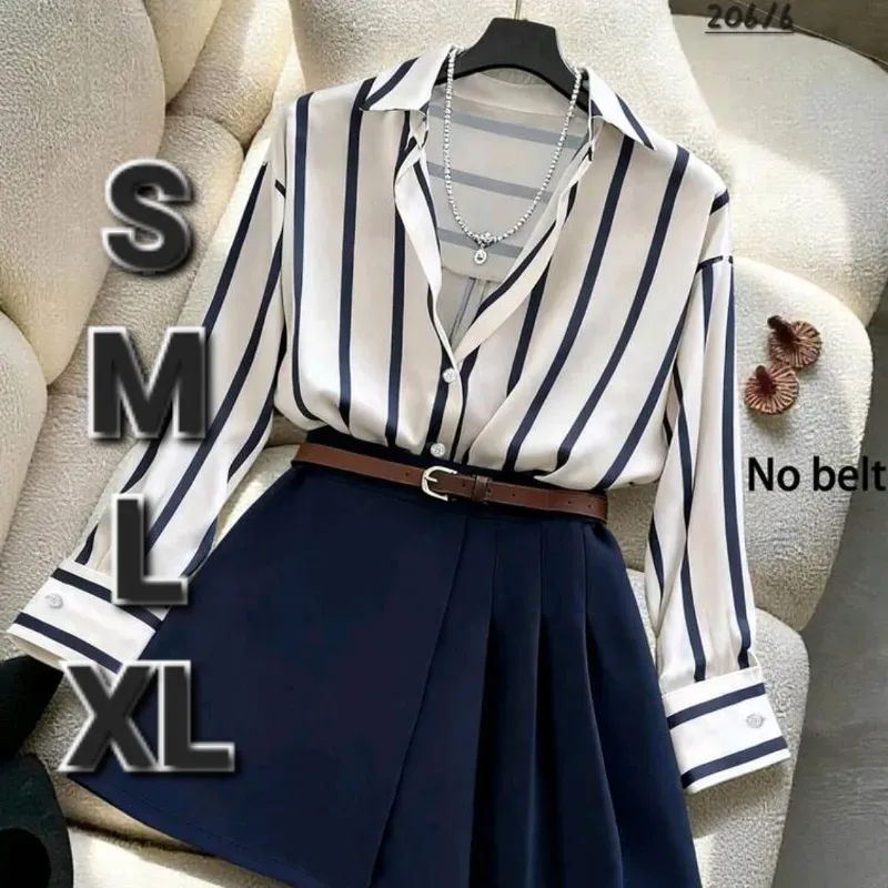 GlowEve Camisa a Raya y Saya Pantalon Plizada