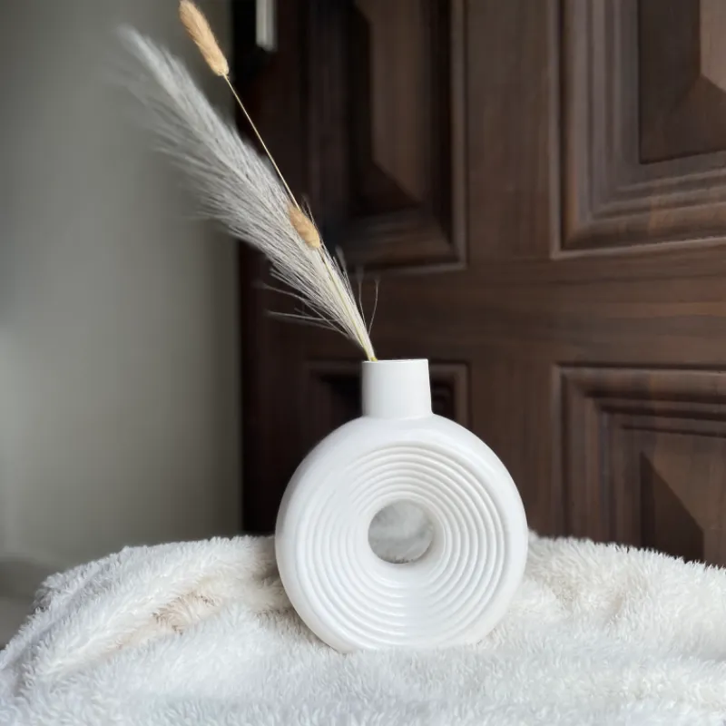 Jarrón tamaño mediano estriado completamente blanco