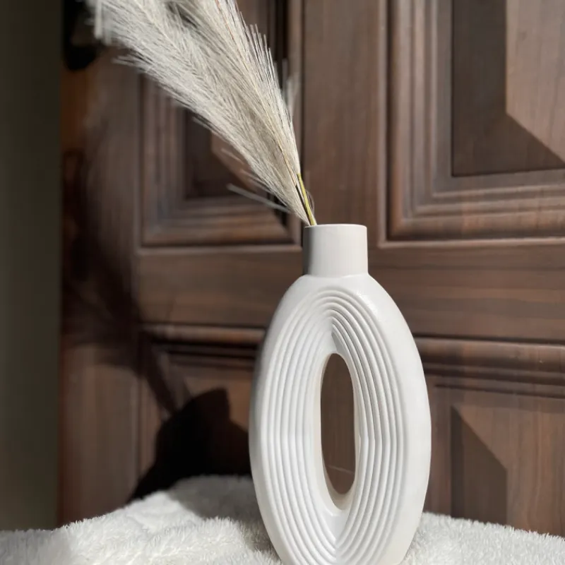 Jarrón estriado grande blanco