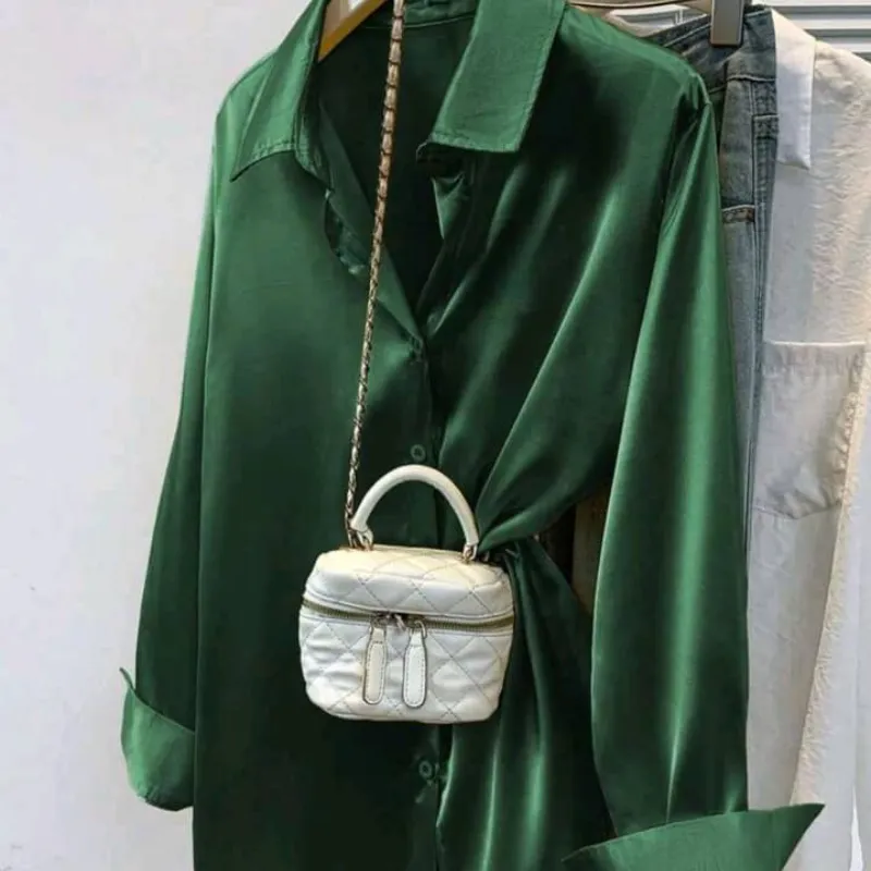 Blusa de satén con botones - Camisa de negocios de manga larga para mujer