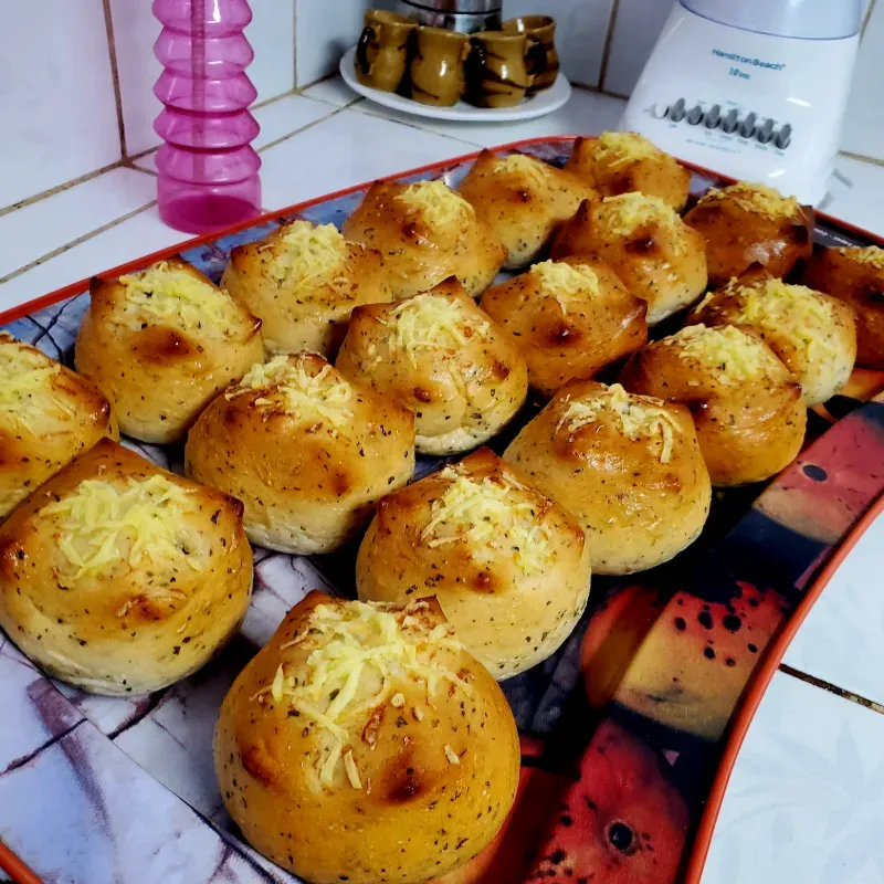 Pan elaborado con especies aromaticas. Decorados con queso...