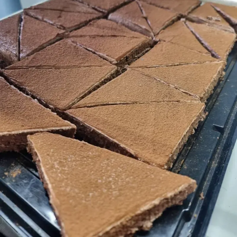 Cuña de masa de chocolate rellena y cubierta con crema mantequilla de chocolate.