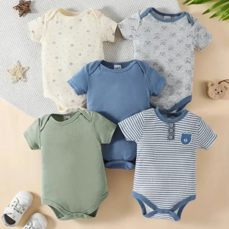 Body / mameluco corto de manga corta de algodón con estampado de dibujos animados lindos para bebés niños, primavera/verano