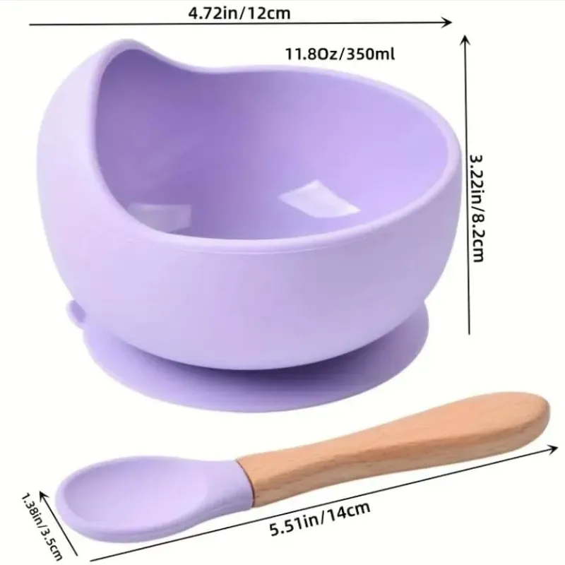 Juego de Comida para Niños con Cucharilla y Ventosa - Tazón de Silicona con Cuchara para Aprendizaje y Entrenamiento