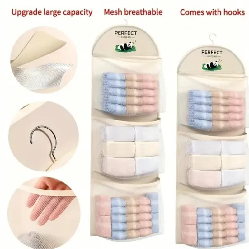 Bolsa de Almacenamiento de Malla de Tres Capas para Ropa Interior, Calcetines y Sostenes - Adecuada para Dormitorio y Hogar, Bolsa de Almacenamiento Montada en la Pared, Diseño de Bolsillo Transparente, Organizador Multicapa | Diseño de Bolsillo Visible, Organización y Almacenamiento de Ropa