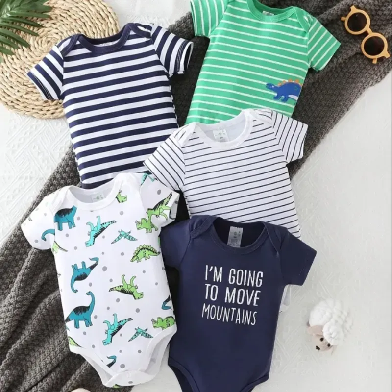 Mamelucos triangulares para bebé niño, mamelucos de manga corta con lindos estampados de dibujos animados, hechos de puro algodón, aptos para uso en exteriores