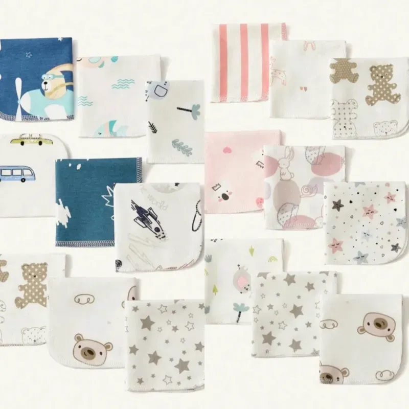 Toallas multiusos para bebé de colores surtidos, con dibujos de dibujos animados/animales/estampados, multiusos para el baño, alimentación, bebida y uso diario. Algodón 100%