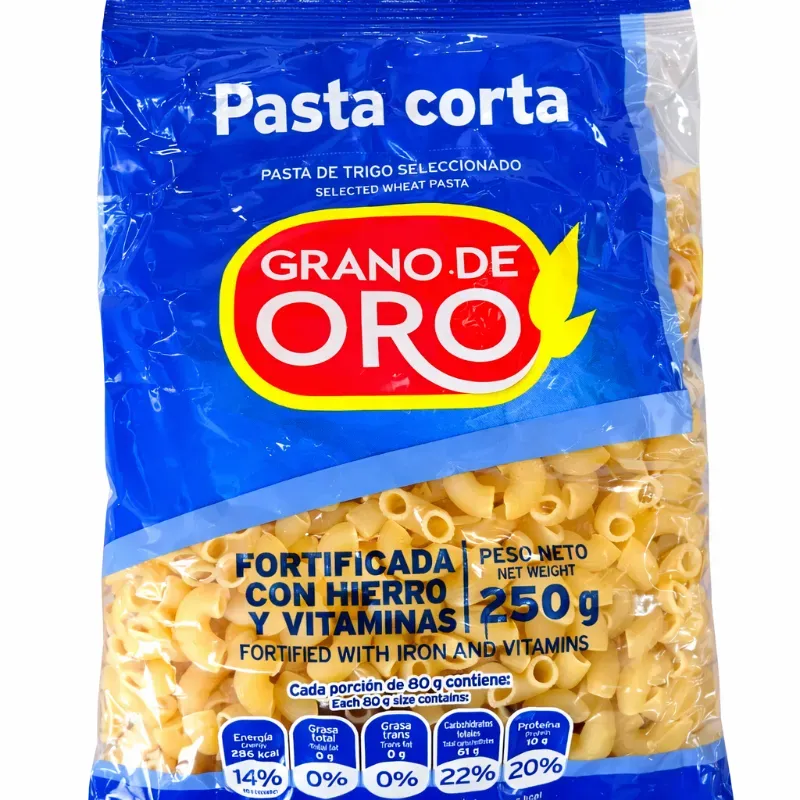 Ingredientes: Harina de trigo fortificada según D.S. No012-2006-SA (niacina (55 mg / kg), hierro (48 mg / kg), tiamina (5 mg / kg), riboflavina (4 mg / kg), ácido fólico (1,2 mg / kg), agua.